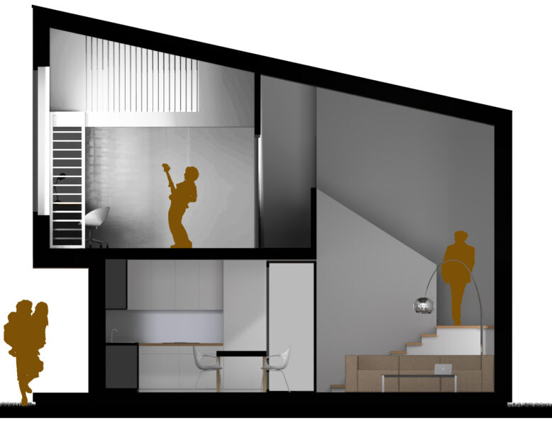 Dans ce projet, l’objectif est d’aérer le plus possible les espaces car la programmation était particulièrement dense pour une maison de 100m2.